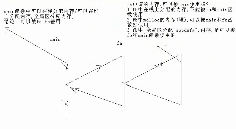 5.栈内存放子函数,用完清空内存,堆内存放malloc申请的,由操作系统或者程序员free,不会清空.全局区同上图.