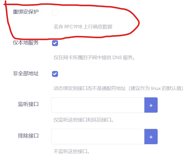 如果开启丢弃RFC1918上行数据包,即无法发送数据包到解析为内网地址的域名。