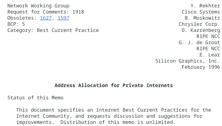 https://datatracker.ietf.org/doc/html/rfc1918